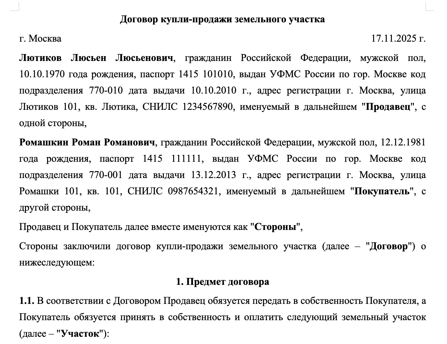 1.1. В соответствии с Договором Продавец обязуется передать в собственность Покупателя, а Покупатель обязуется принять в собственность и оплатить укажите размер долиdkp_kv3333 доли (далее – "Участок") следующего земельного участка: