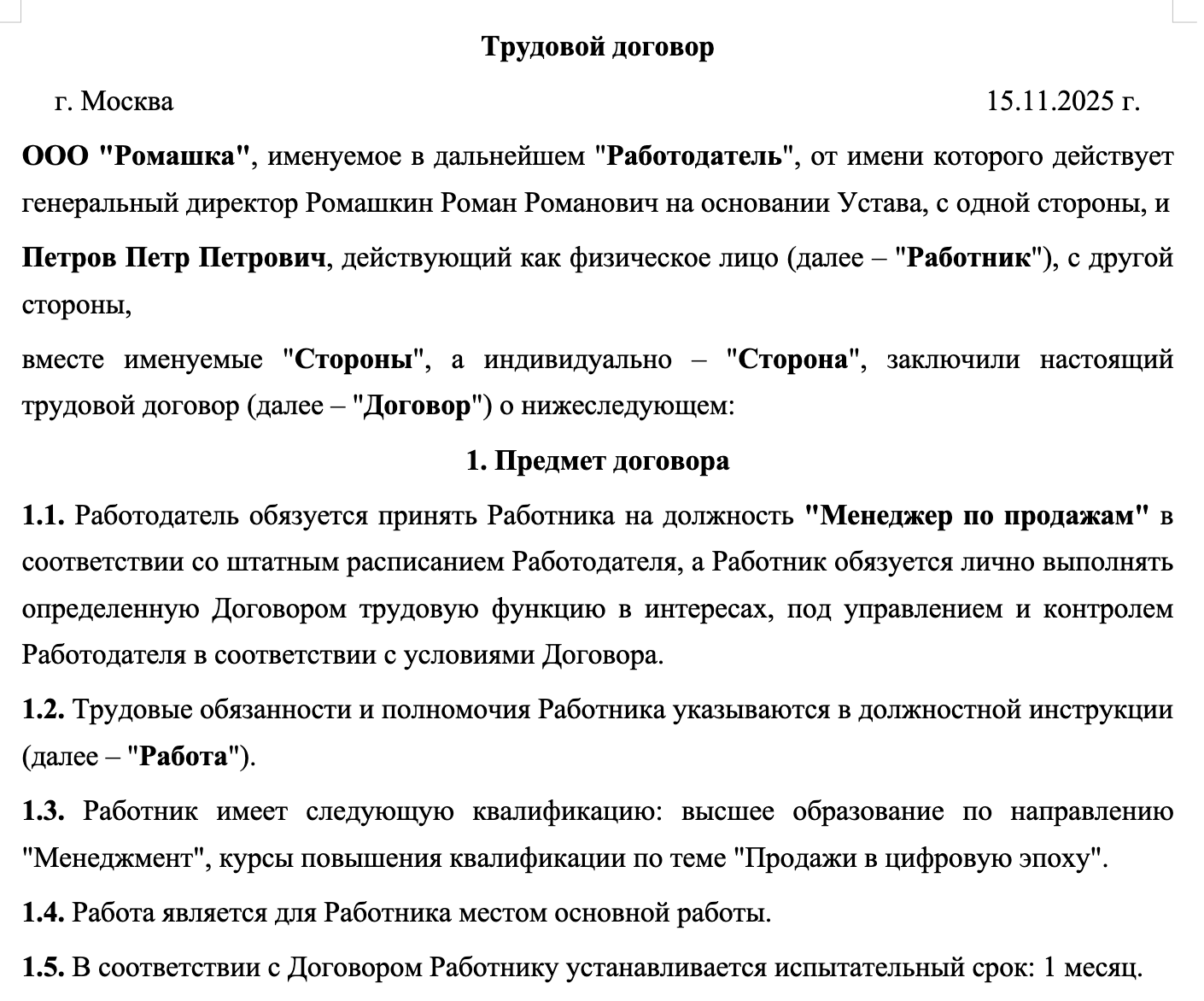 вместе именуемые "Стороны", а индивидуально – "Сторона", заключили настоящий трудовой договор (далее – "Договор") о нижеследующем: