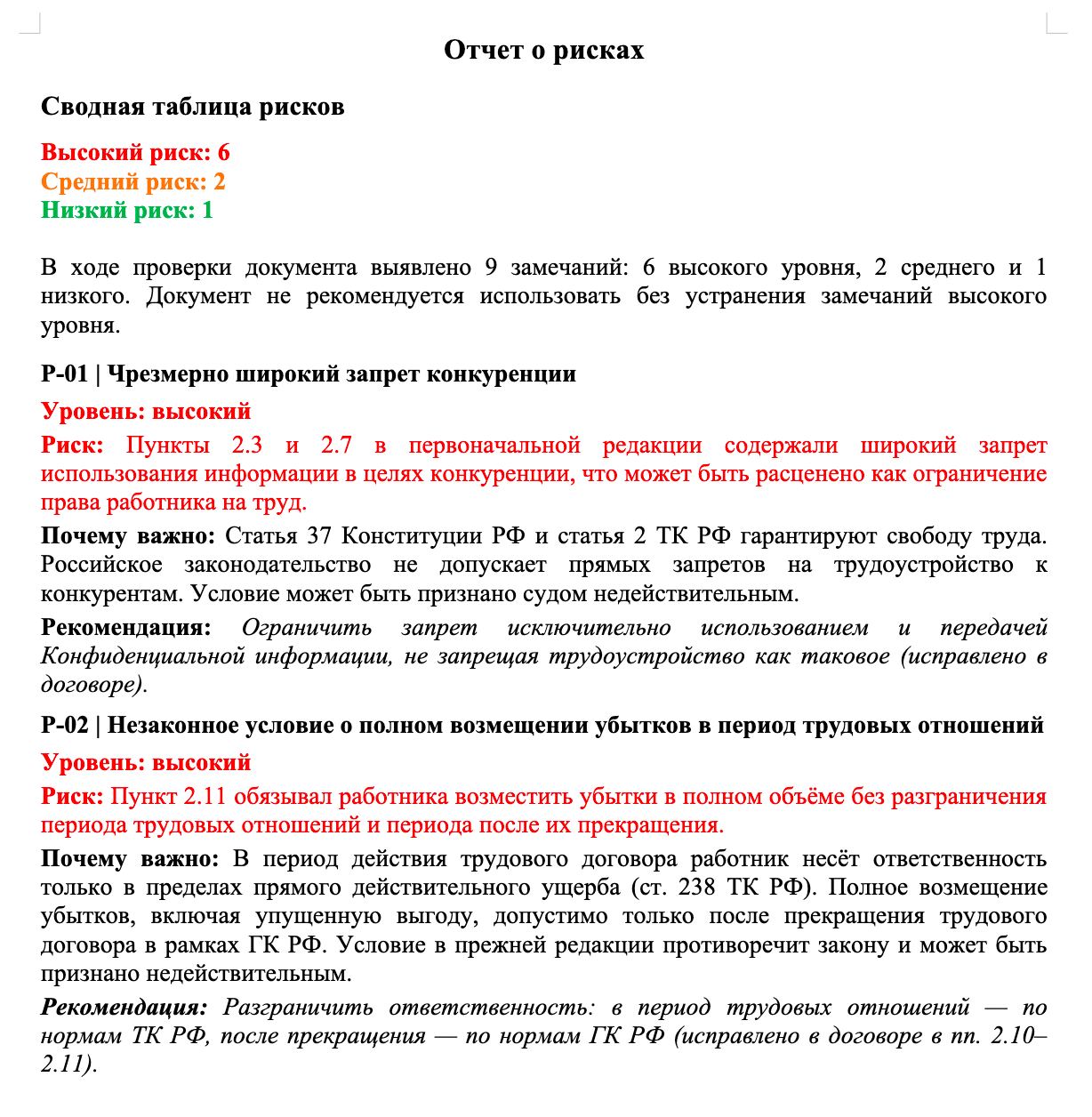 Скачайте файлы: исправленный документ, документ с правками, отчет о рисках